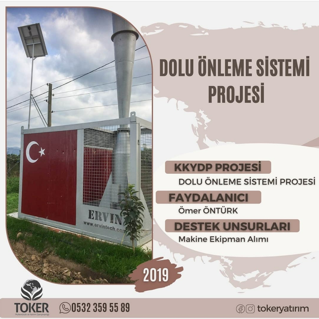 Ömer Öntürk firması “Dolu Önleme Sistemi Projesi” danışmanlık hizmeti TOKER Mühendislik ve Yatırım Danışmanlığı tarafından verilmektedir.