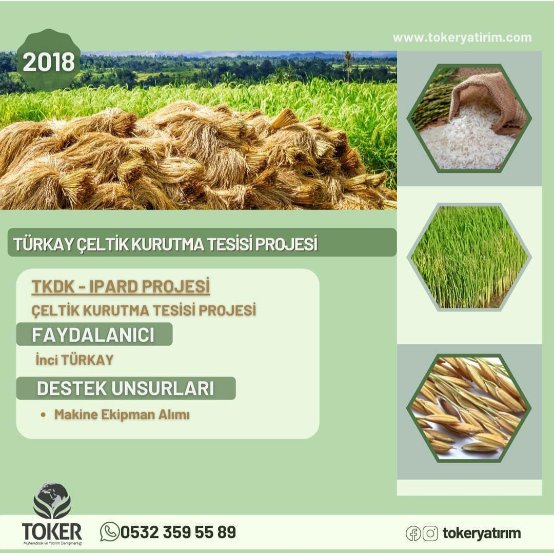 İnci TÜRKAY firması “Çeltik Kurutma Tesisi Projesi” danışmanlık hizmeti TOKER Mühendislik ve Yatırım Danışmanlığı tarafından verilmektedir.